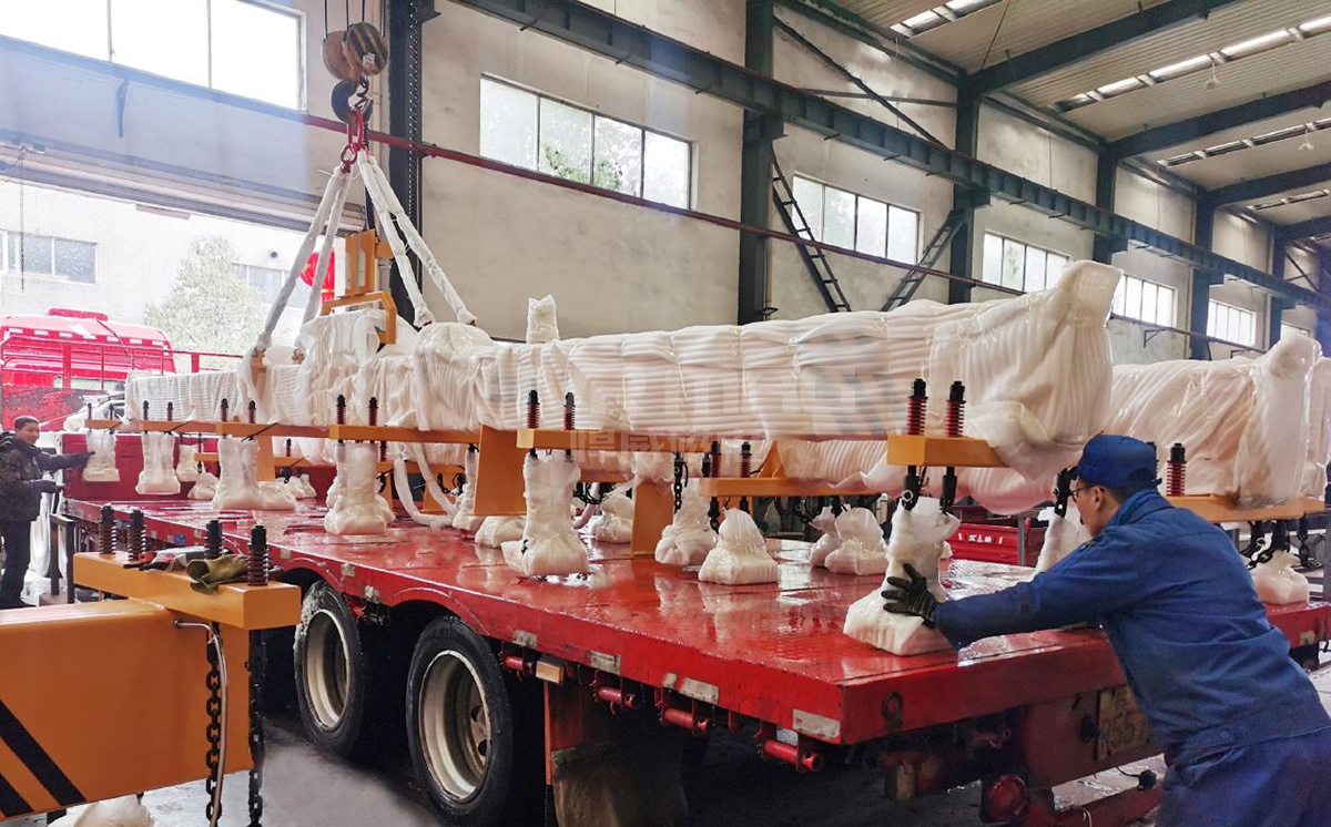 發(fā)貨現(xiàn)場,悍威人鉚足干勁,精神抖擻,齊心協(xié)力地將一套套電永磁吊具整齊有序地碼放在貨車上并進行固定,確保發(fā)貨一路順利。