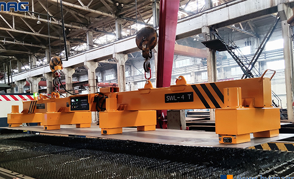 鋼板吊裝工具將鋼板送入切割機(jī)進(jìn)行加工,客戶之前使用傳統(tǒng)鋼板夾鉗搬運(yùn)鋼板;如今,他們正在選擇一種新的起重設(shè)備——鋼板專用磁力吊具。