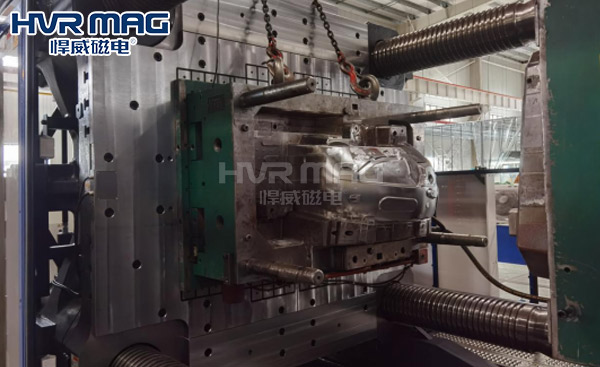 據了解,我們的客戶是一家專業為汽車工業提供保險杠等注塑制品的企業,該客戶以前使用螺栓固定汽車保險杠、汽車門板框等汽車專用模具,但每次在換模時,總是需要利用人工將一個個螺栓擰緊,以此固定模具,換一次模具,不僅費時費力,而且嚴重影響整個注塑機的生產加工效率。為了徹底解決注塑機換模難的問題,提高注塑機的生產加工產能,該客戶引進了悍威磁電的磁力快速換模系統。