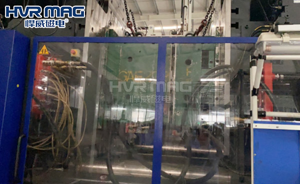 悍威磁電研發生產的電永磁快速換模系統——磁力模板,利用強大的永磁磁力吸附模具,短暫的瞬間電流自動控制磁力模板的充磁與退磁,實現模具的快速夾緊與釋放,停電環境下模具不掉落,確保注塑機安全運轉。