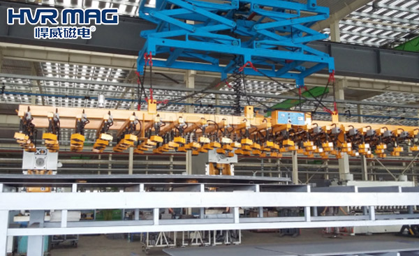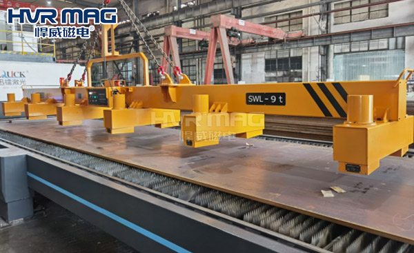 鋼板切割上下料是眾多板材加工中必不可少的一個環節,鋼板切割線(火焰切割、等離子切割、激光切割 等)的上下料,通常要求上料時只吊運一張整板,切割完后,所有切割工件一次性或盡量多的從切割臺上 吊運下來,本篇悍威磁電小編就來和大家聊聊鋼板切割上下料吊具的選擇需要考慮哪幾點?