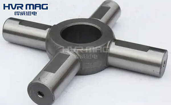 解決方案:由于十字軸提供吸附面積為圓形,所以本次采用一個外形設計成直徑40mm的圓形電永磁鐵來配合桁架機械手進行搬運十字軸,可提供20KG額定吸力,設計安全系數為4倍,最大拉脫力達到80kg,確保在搬運作業中有足夠的吸力來克服翻轉說來帶的摩擦力,保證作業時的安全,從而保證不掉工件。