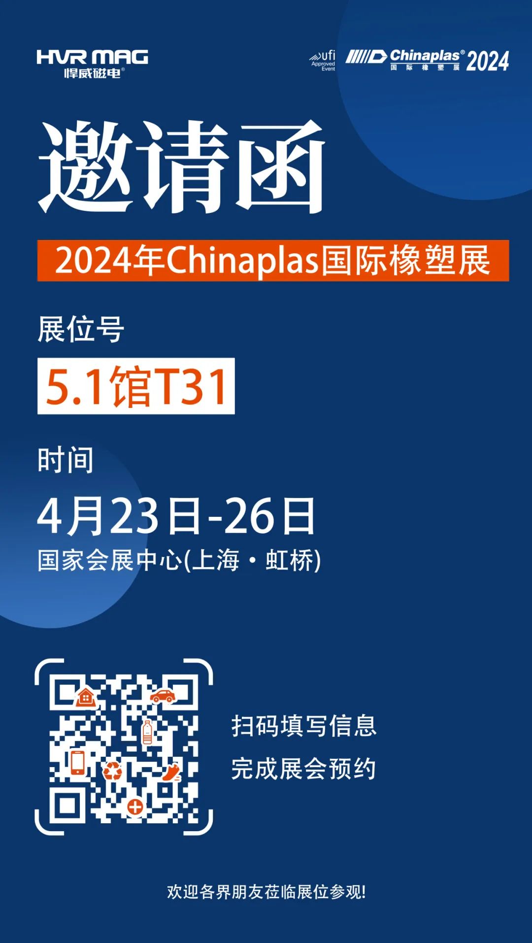第三十六屆中國國際橡塑展會將于2024年4月23日-26日在上海虹橋國際會展中心舉行。悍威磁電將攜電永磁快速換模系統亮相本展會。我們在5.1館T31恭候您的光臨。