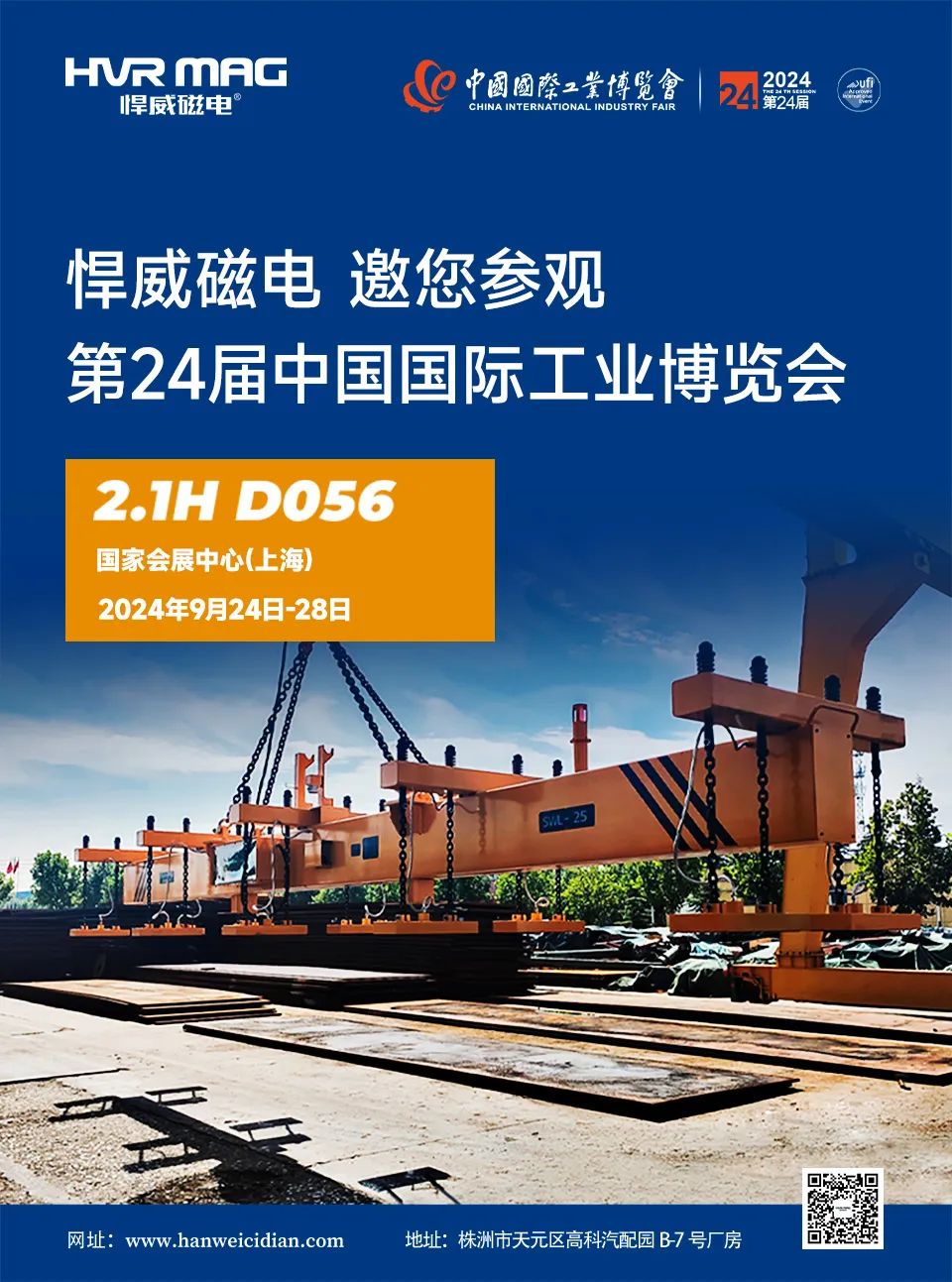 第24屆中國國際工業博覽會將于2024年9月24日-28日在國家會展中心(上海)舉行。悍威磁電將攜最新的科技成果亮相。我們誠邀您共赴這場科技與工業交織的盛會,一同感受智能制造的變革力量。