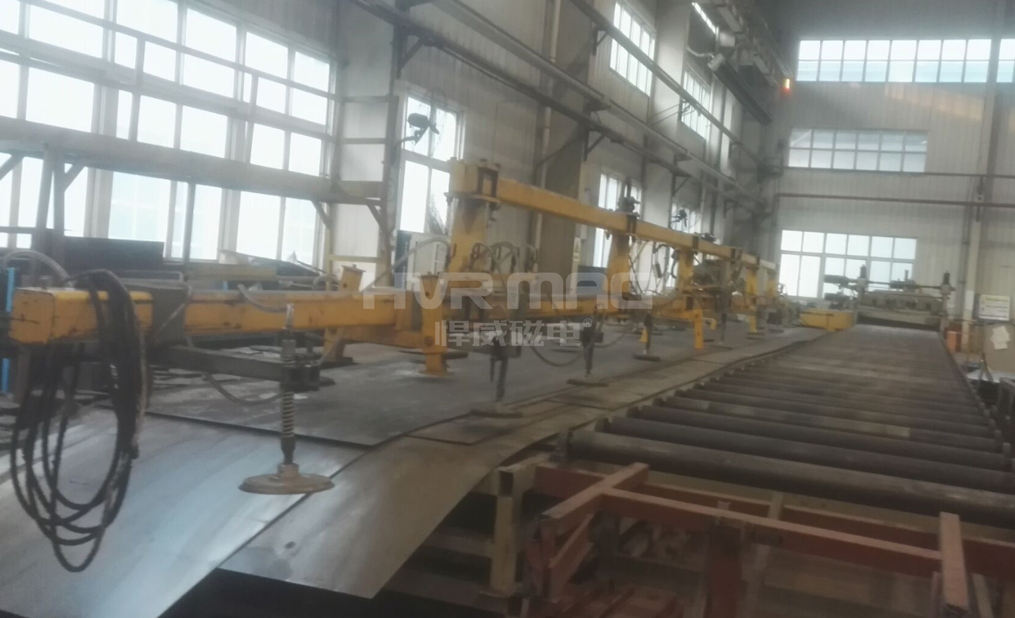 通過改進整體技術方案,悍威磁電用32個電永磁鐵的吊裝方案吊裝16米長的薄鋼板,開創(chuàng)了國內最長薄鋼板吊裝案例的先河。
