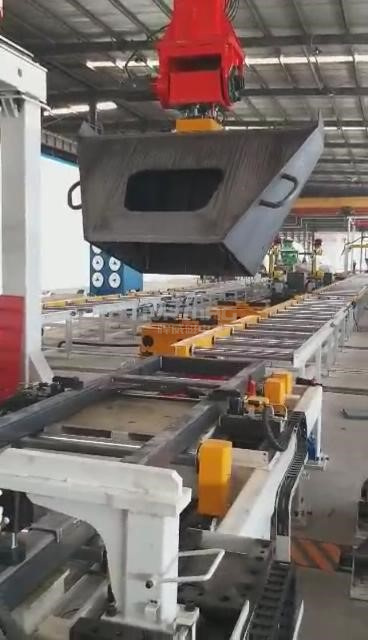 下圖是國內某智能制造企業工作車間現場,車間的桁架機械手,搭配悍威磁電定制制作的磁力抓夾,實現自動化搬運異形工件,提高物料搬運效率和企業整體的生產效益。