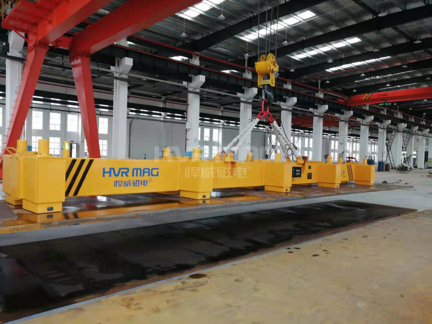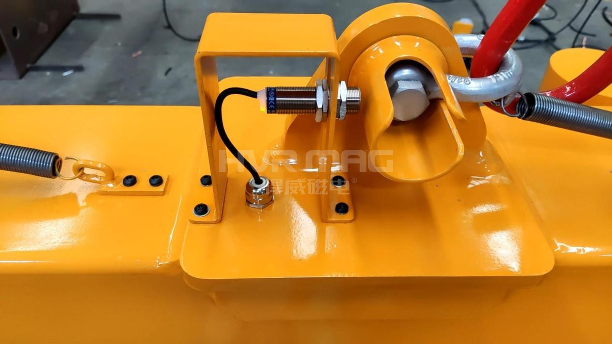 如今磁力吊具運用到各個鋼材搬運崗位中。悍威磁電進一步保障安全生產(chǎn),在磁力吊具中加入落地監(jiān)測功能,以防在磁力吊具工作中被誤按退磁按鈕發(fā)生掉落事故。