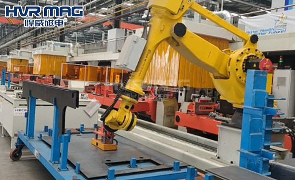 據不完全統計,每年因為鋼板掉落造成安全事故的情況不在少數,員工安全得不到保障,而悍威磁電研發生產的碼垛機器人專用電永磁夾具非常安全,電永磁鐵擁有斷電不失磁的特性,即使遇到停電或者線路故障也不會失去磁力,避免鋼板掉落引發安全事故,解決了安全事故發生的隱患。