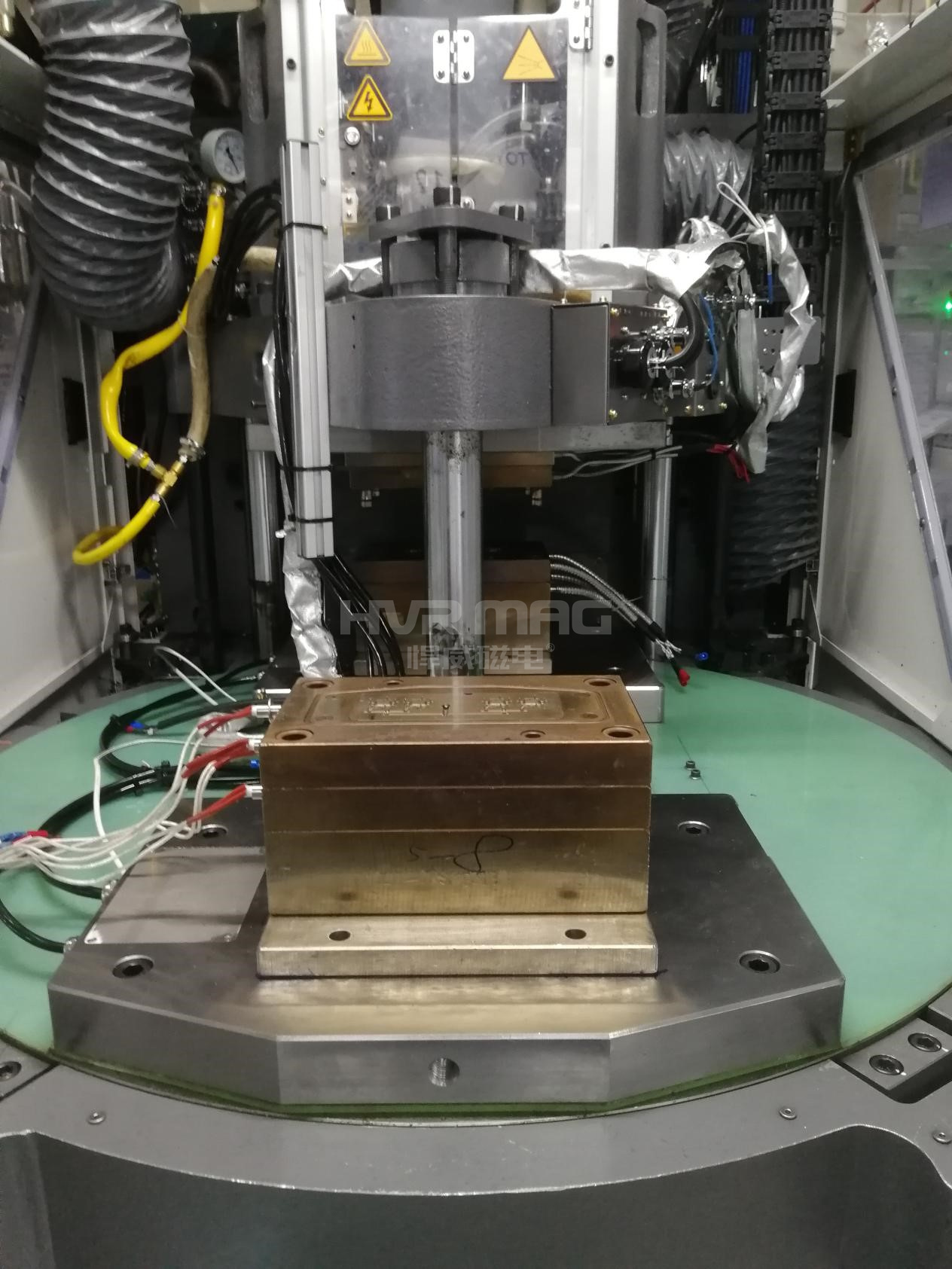 如圖中所示,就是悍威磁電的磁力模板在40噸立式轉盤式注塑機上的應用,包含兩塊磁力靜(下)模板以及一塊磁力動(上)模板。不管是臥式還是立式,悍威磁電都能依據(jù)機型和模具參數(shù),定制化生產(chǎn)磁力快速換模系統(tǒng)。