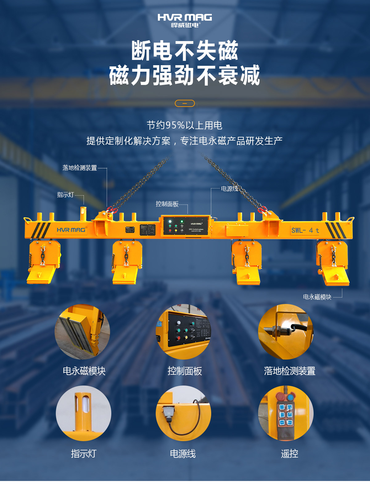 單張多張都可以,悍威磁電電永磁吊具有不同的型號,對應(yīng)不同的起吊需求