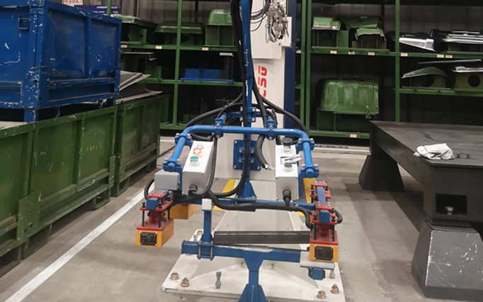 下圖是悍威磁電電永磁磁力抓手在自動化工程機械行業的最新應用,機械臂磁力抓手,用來搬運體積大重達50公斤的框架類鋼件。