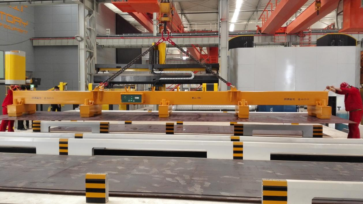 隨著國內橋梁需求越來越多,目前國內配套的橋梁鋼結構廠也越來越多。并且在廠房建設和安全方面都是額外的注重,在之前鋼結構廠基本都是用的永磁鐵或者鋼繩進行搬運,搬運的大多是常規的鋼板。在這種工況下使用傳統的吊具消耗的時間很長,大部分工人都需要在臺面上進行工作,工作的危險性比較大, 容易造成安全事故。