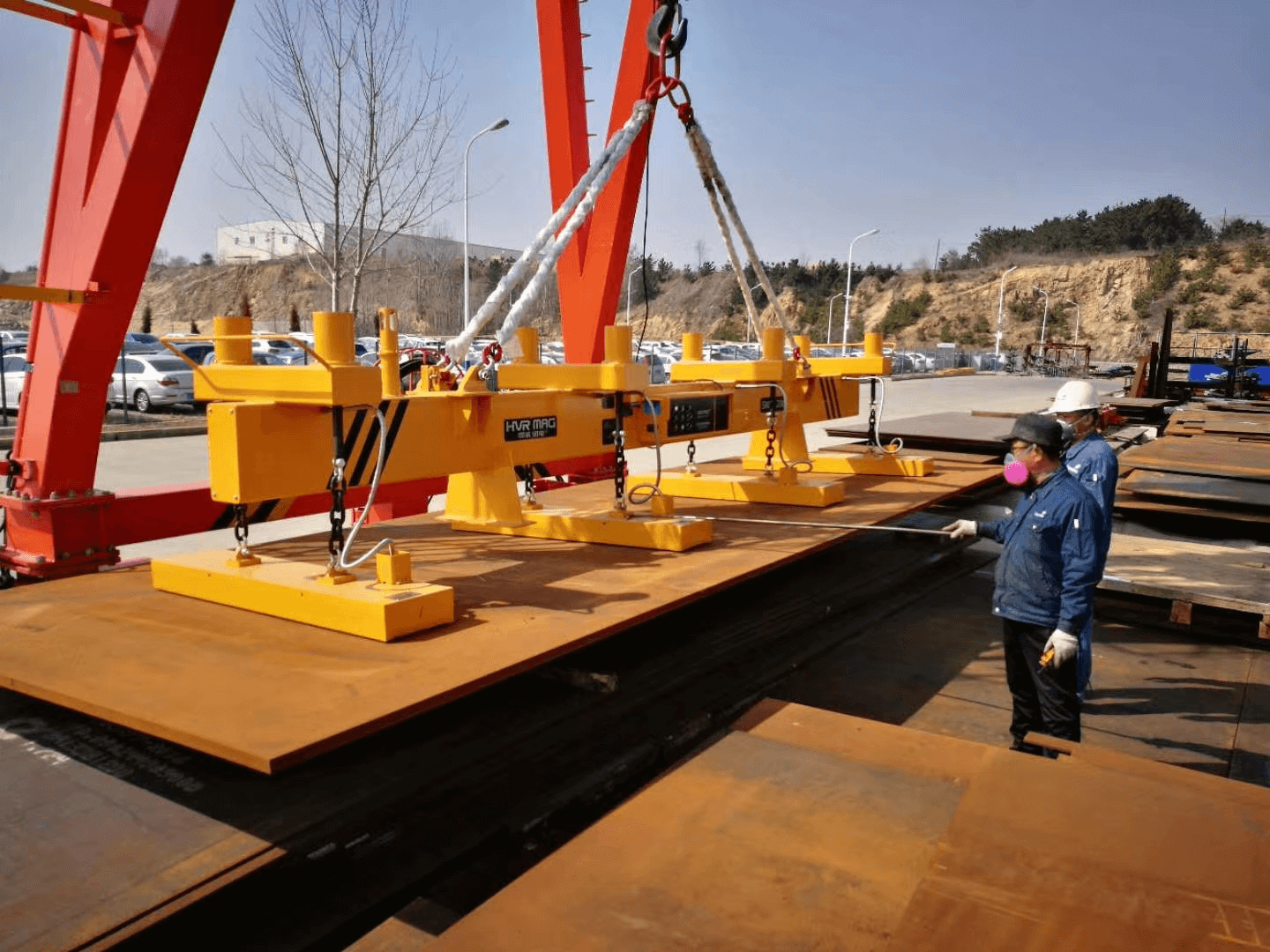 1. 鋼板的吊裝搬運:在大型船體分段或單張鋼板的起吊上,電永磁吊具可以適應不同尺寸不同厚度的鋼板,能夠快速吸附并固定住鋼板,保證吊裝作業的安全性