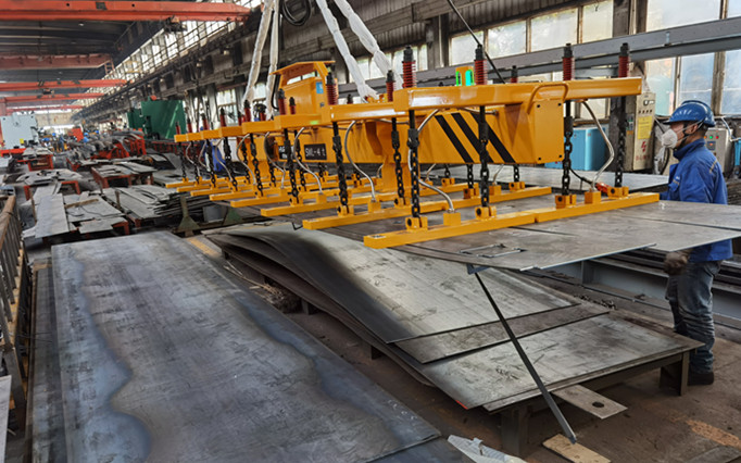 3、避免鋼板變形:鋼板鉗、吊鉤夾住鋼板很容易在鋼板表面留下劃痕,且太長的鋼板在吊運過程重容易彎曲變形,影響后續的鋼材加工;而呈對稱性分布的起重電永磁鐵均勻的磁吸力,則成功避免了此類變形。