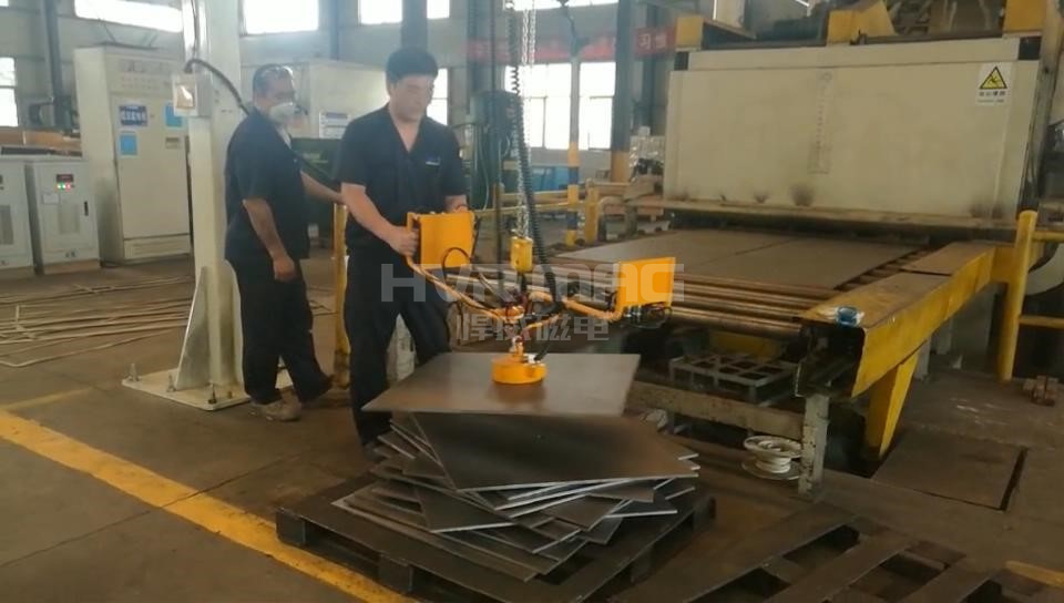 電永磁鐵均勻的磁吸力,不會對校平后的鋼板帶來損傷;同時,由于電永磁技術(shù)的特殊性,使得它在抓取搬運鋼板的過程中不消耗任何電能,只在控制磁吸力開關(guān)的充退磁過程瞬間用電,為企業(yè)減少了能耗,降低了成本;同時,即使在突然斷電的突發(fā)狀況下,被吊起的鋼板也不會掉落,規(guī)避了人員設(shè)備的損傷風險。