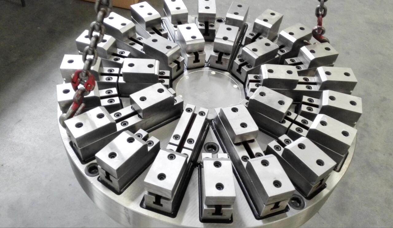 解決方案:設計DYCC2-700S圓形立車磁力吸盤替代原有夾具,有效磁力面積直徑188-660mm,每平方厘米吸力16kg,吸附工件充退磁時間<2S,遠低于傳統卡具固定工件時間,工人勞動強度也低,另吸盤為面受力,受力均勻,相對傳統卡具,工件加工出來精度更高。