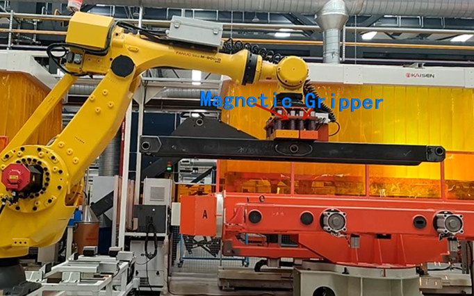 悍威磁電的磁性抓取解決方案,用于自動焊接生產線中的拾取和放置機器人,由兩部分組成,在以下各部分中分別列出。