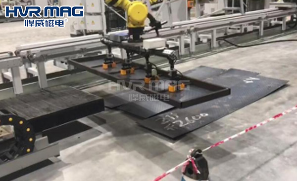 在智能制造、自動化產線這些場景中,搬運小型鋼板是很常見的一種工況。那我們如何保證安全又高效的搬運作業呢?訣竅就在選擇正確的桁架機械手末端夾具。毫無疑問,電永磁夾具在搬運鋼板這種工況百分之百是最佳選擇。因為他有強大的兼容性,并且有用斷電不失磁的特點。僅在0.2-3秒內就能完成充退磁工作。一臺電永磁夾具就能滿足您所有需求。