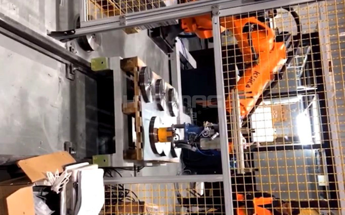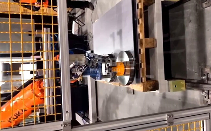 下圖是悍威磁電生產的電永磁吸盤在自動化打托碼垛領域的應用案例,作為機器人磁力抓手搬運圓形鋼制工件并將其放置在托盤上(打托)。